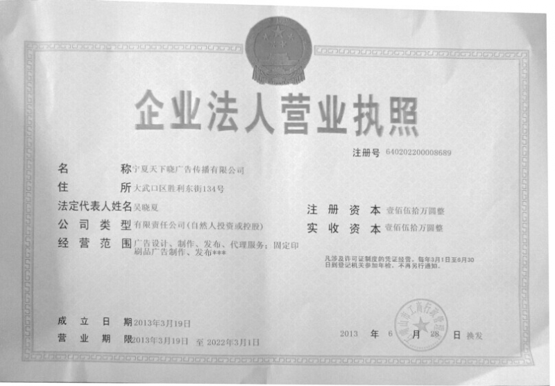 公司成立于2010年,是时空快讯DM广告后于2013年更名为天下晓广告传播有限公司。公司正式使用《天下晓》为公司主打连锁品牌,本公司主要业务手册、海报、地图册、报纸、杂志(期刊),拥有设计、制作、发布、各类广告业务和发布固定形式印刷品广告、信息咨询等相关资质。天下晓广告公司力争创立全国连锁DM广告,初创以来,宁夏地区现有平罗公司、银川分公司,其他分公司目前正在加盟中。 目前天下晓与全球资源网达成战略合作伙伴,整合资源赢天下理念,共同完成中国梦,我的梦,而努力招商合作进行中,欢迎各地区积极参与合作,同步发展.